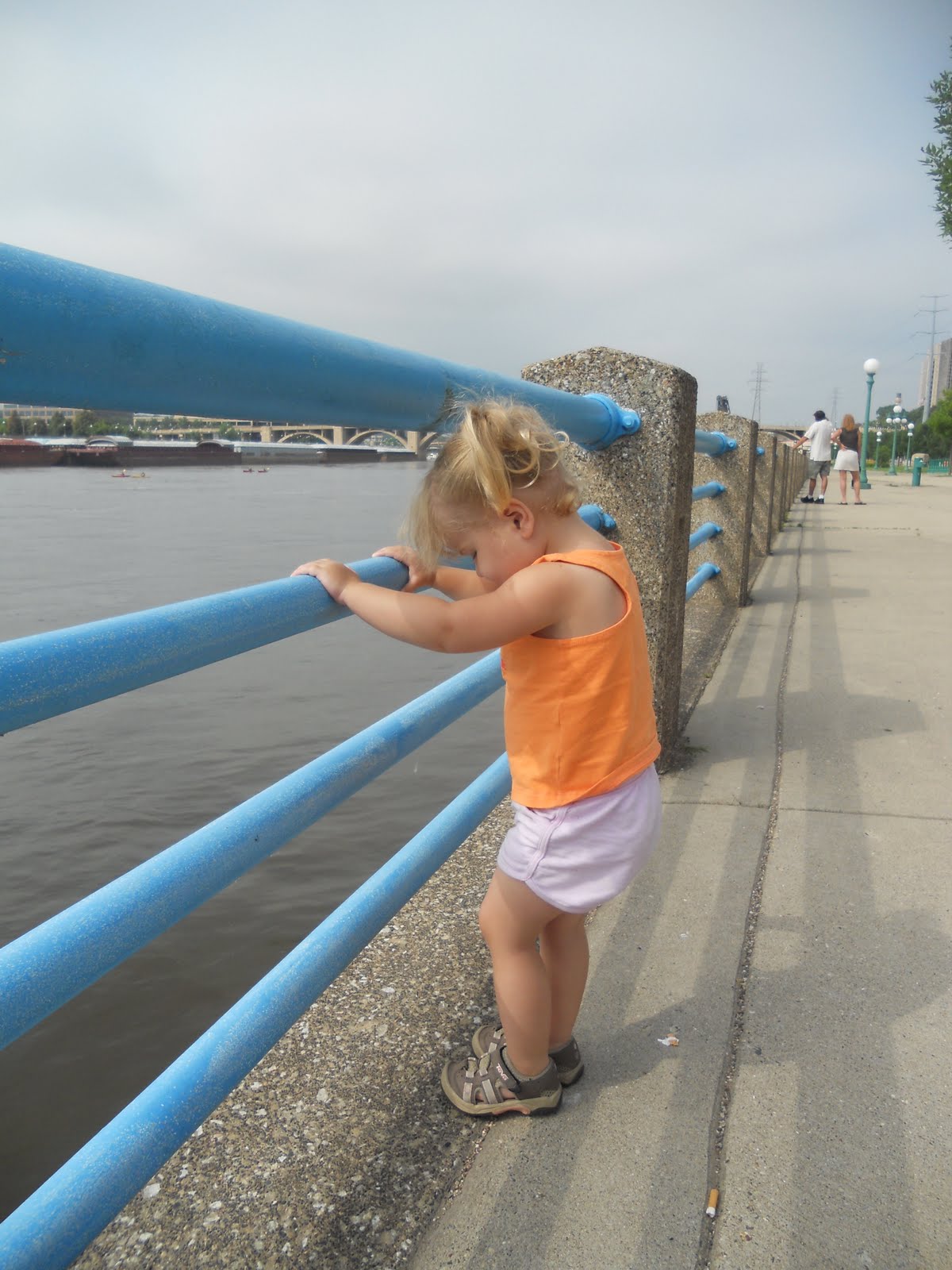 Sunday morning Linnea headed down to the Mississippi River in hopes of seeing our friend Pat and Megan kayaking. They were doing the The Mississippi River Challenge which entailed canoeing or kayaking the Mighty Mississippi from Coon Rapids to the Cottage Grove Area. I think it was about 44 miles in two days! Two HOT days! They made it and had so much fun! I wish we had got there earlier to see them but when you keep Linnea up til about 10pm she sometimes wants to sleep until almost 10am! We still enjoyed seeing the other participants and walking in the heat along the river. We both had popsicles to cool off upon returning home and played inside for a while before lunch and nap. I promised L we could have some ice cream with GG after supper later when she woke up. She liked that idea and went right to sleep. When she woke up she right away said, ice cream with GG now mommy?? I said after supper. So that is what we did. I forgot to say that when I found my keys, Linnea right away said, we can go to GG's now!!! She is so cute and observant. She remembered we could not go anywhere the other day because I coudnt find my keys.