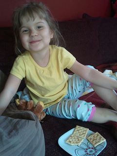 We have been VERY sick over here...well not all of us. Just poor Linnea and Chris. Linnea woke up in the middle of night (around 1am) Wednesday screaming and then the puking began and didnt stop until about 3am. We have seen her puke but we have never seen the terrible tummy cramping she had. She was just beside herself and so scared which makes us as parents feel so bad. I just wished it was me instead of her. She finally was able to sleep from about 3-7. Here she is the morning after the puking...a bit of a sparkle in her eye already. She is a tough girl. And Harper remained happy through it all, eating her peaches here.