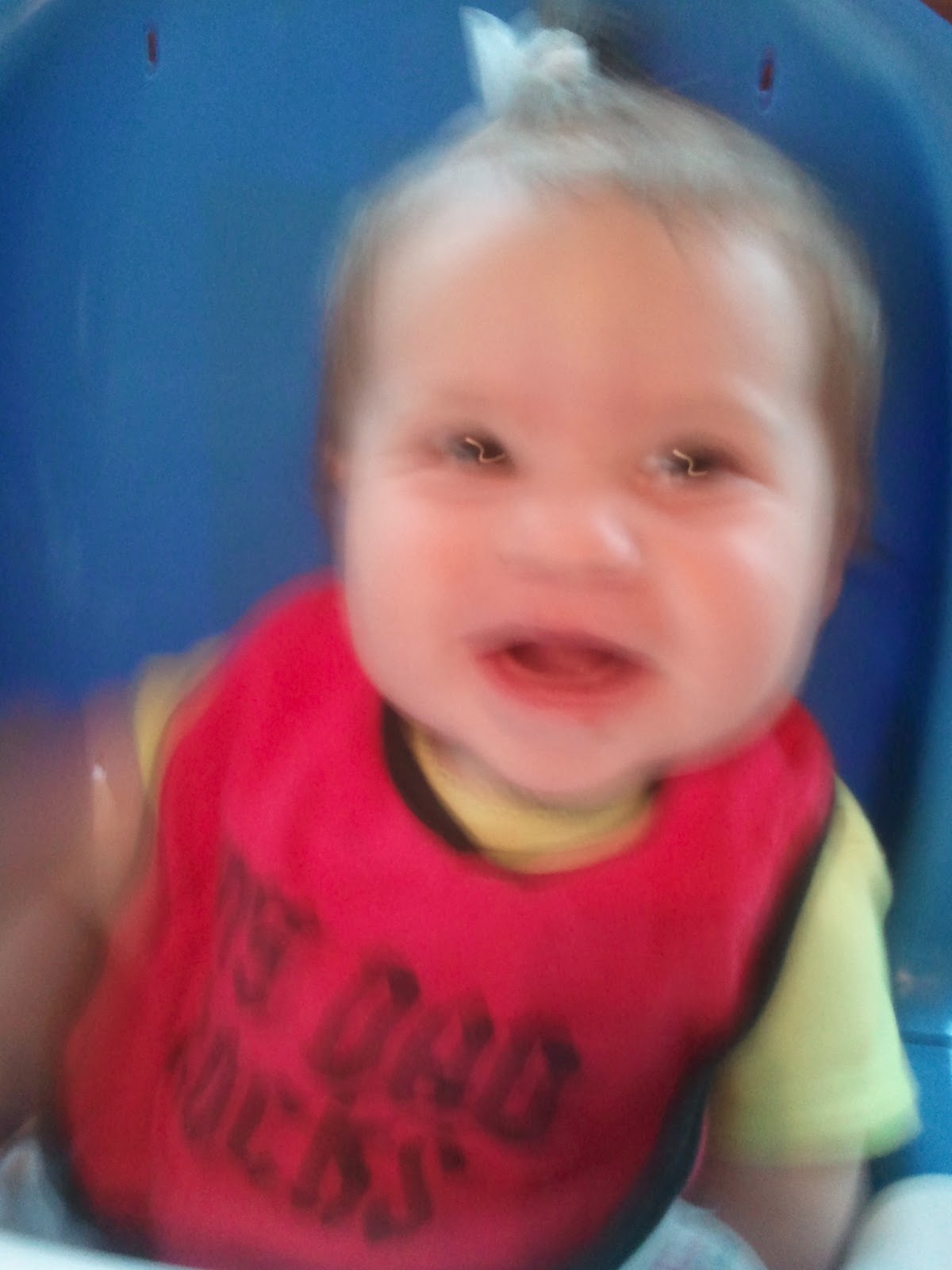 Not too much has changed since I was 8 months old...my 9 month old appt got pushed back so I haven't had that yet. My parents sure seem to think I am getting bigger...I do love to eat. I get very excited and knod my head back and forth at the sight of food. I love to laugh and was recently compared to the pillsbury doughboy...a video will hopefully be on here soon of it. Mommy likes to put something in my hair everyday and I like to pull/play with her hair and Linnea's hair. Linnea is still the funniest girl on Earth. I have smiles for almost everyone I see, usually after studying them for a little while. I still love music and have enjoyed going to the kids concerts mommy find for me and sissy. My newest trick is spitting with my tongue!